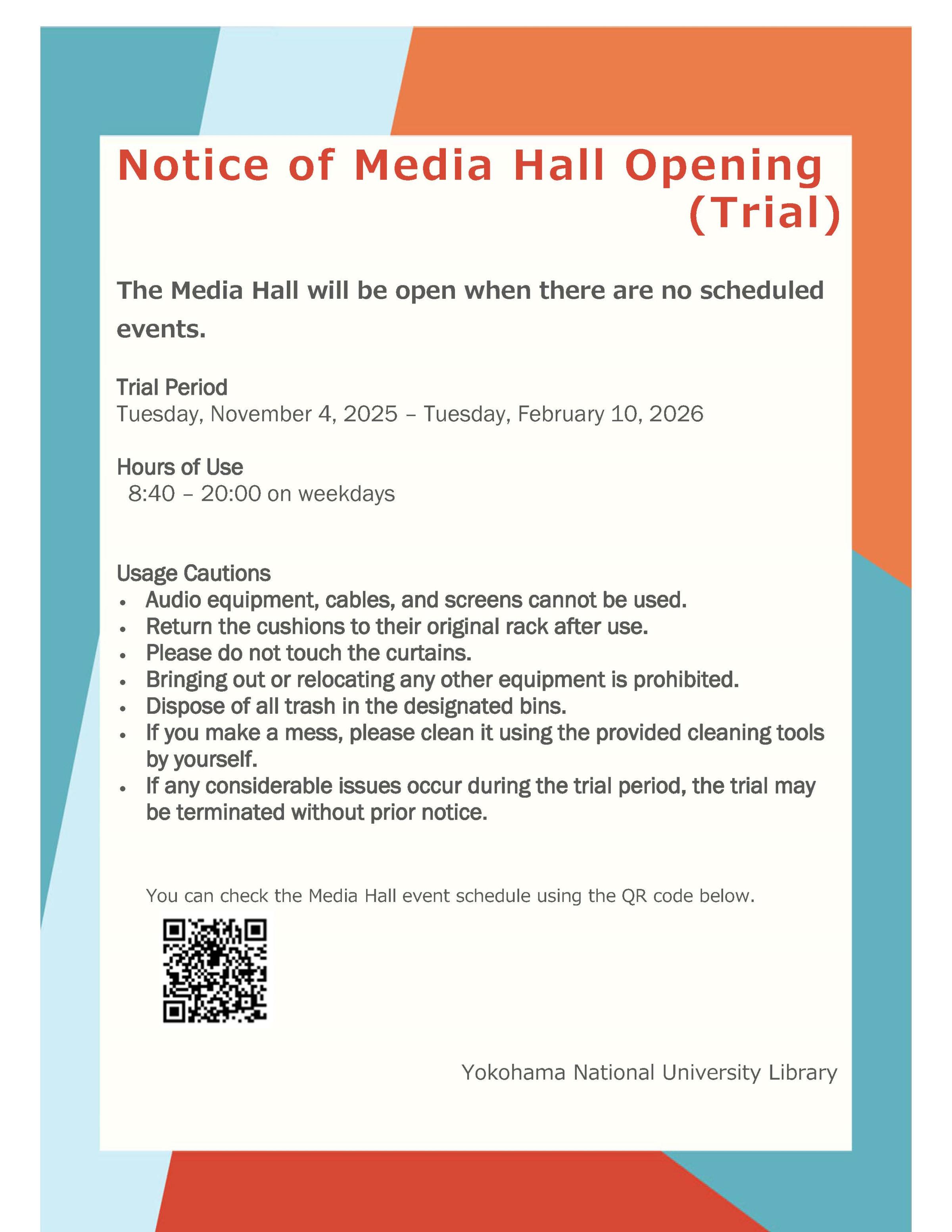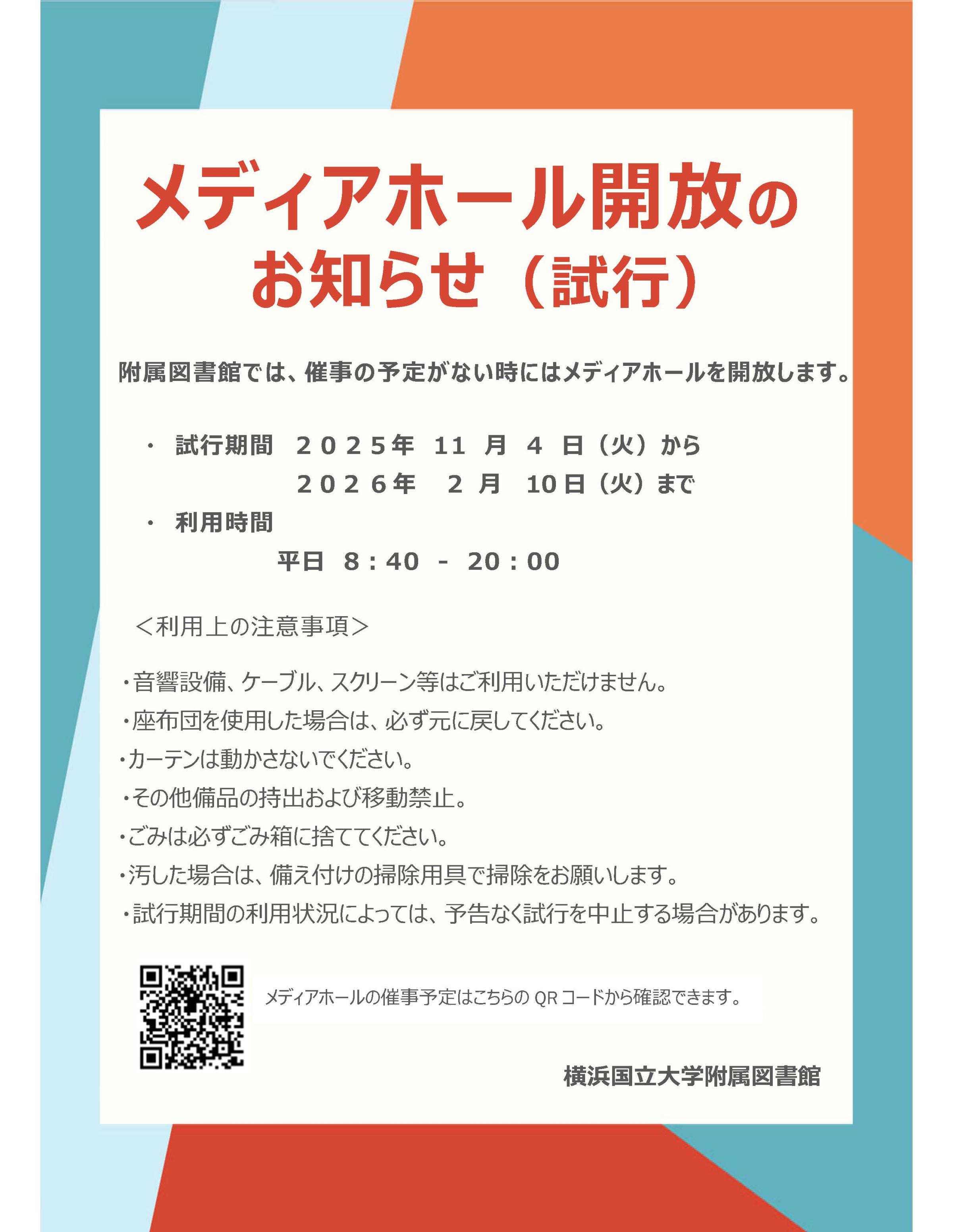 メディアホール開放のお知らせ(試行)