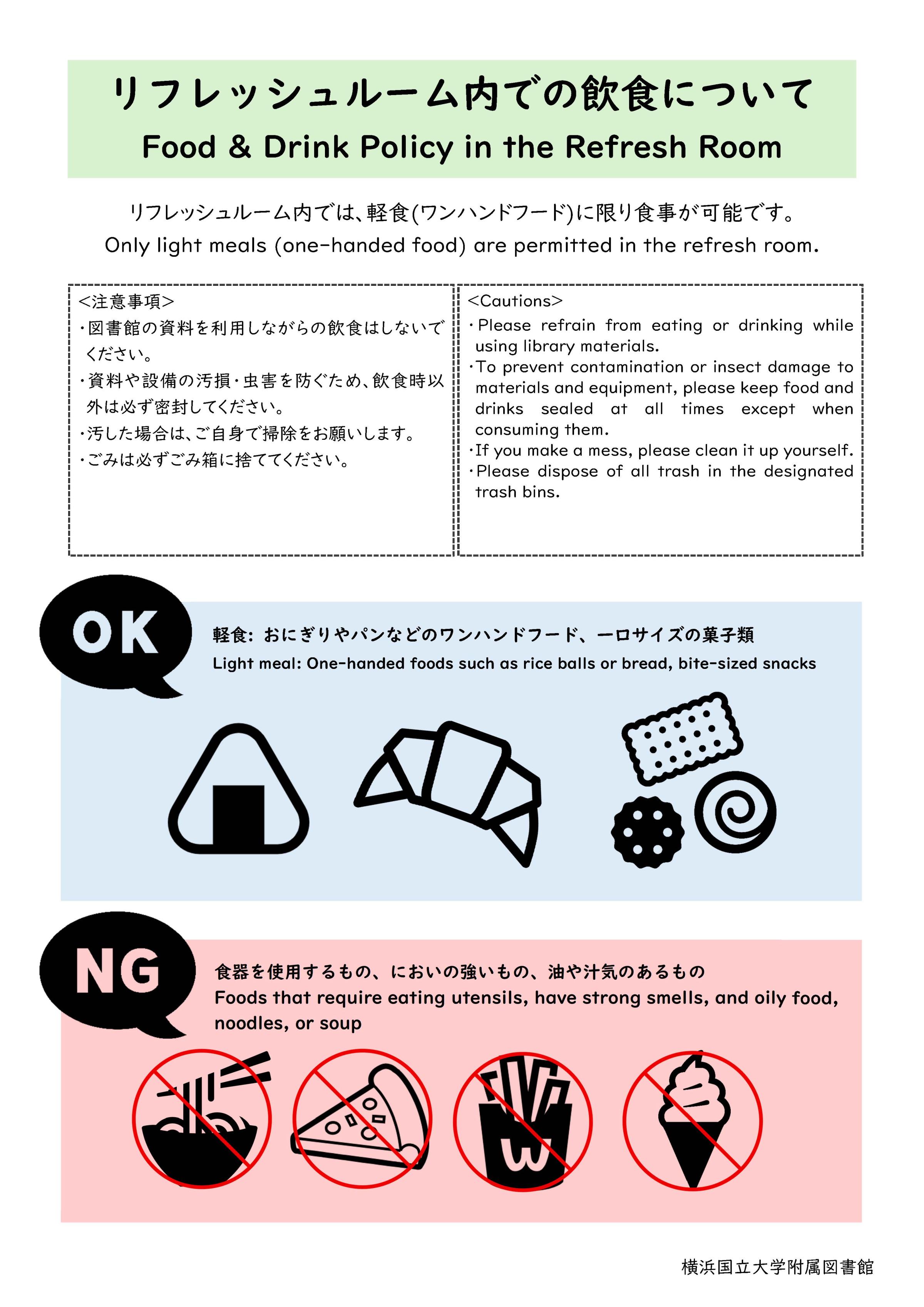 - 飲食ルールの正式決定について/ Notice of Drink & Food Policy in the Library
